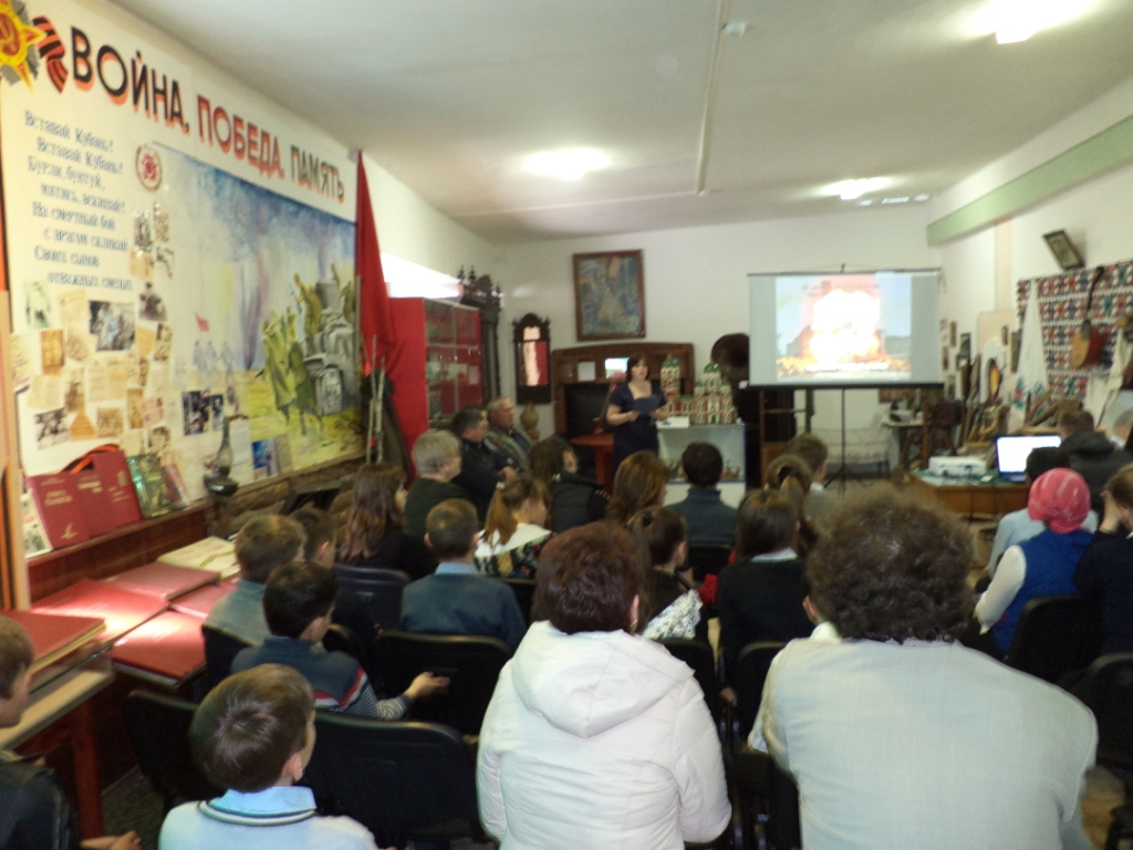 Трагедия произошла в ночь с 25 на 26 апреля 1986 года, и до сих пор она сказывается на окружающей среде и на людях, особенно на тех, кто участвовал в ликвидации последствий катастрофы. Директор музея Ф.А.Щербины Дворовая Юлия Владимировна провела музейный урок «Чернобыль-трагедия XX века» для учащихся 4 класса. В мероприятии, посвящённом скорбной дате, приняли участие ликвидаторы Чернобыльской аварии- земляки Анатолий Михайлович Гуденко, Борис Иванович Смирнов, Владимир Владимирович Юрченко. На мероприятие своими воспоминаниями о трагедии на ЧАЭС поделился Смирнов Борис Иванович. В процессе мероприятия представлена школьникам презентация документального фильма «Чернобыль: хроника событий».