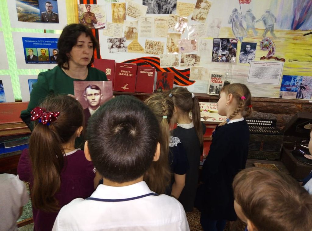Дворовая Юлия Владимировна провела экскурсию и рассказала о наших земляках -участниках Великой Отечественной войны. Особое внимание она уделила рассказу о Герое Социалистического труда, ветеране Великой Отечественной войны Мотько Василии Александровиче, чьё имя носит класс.