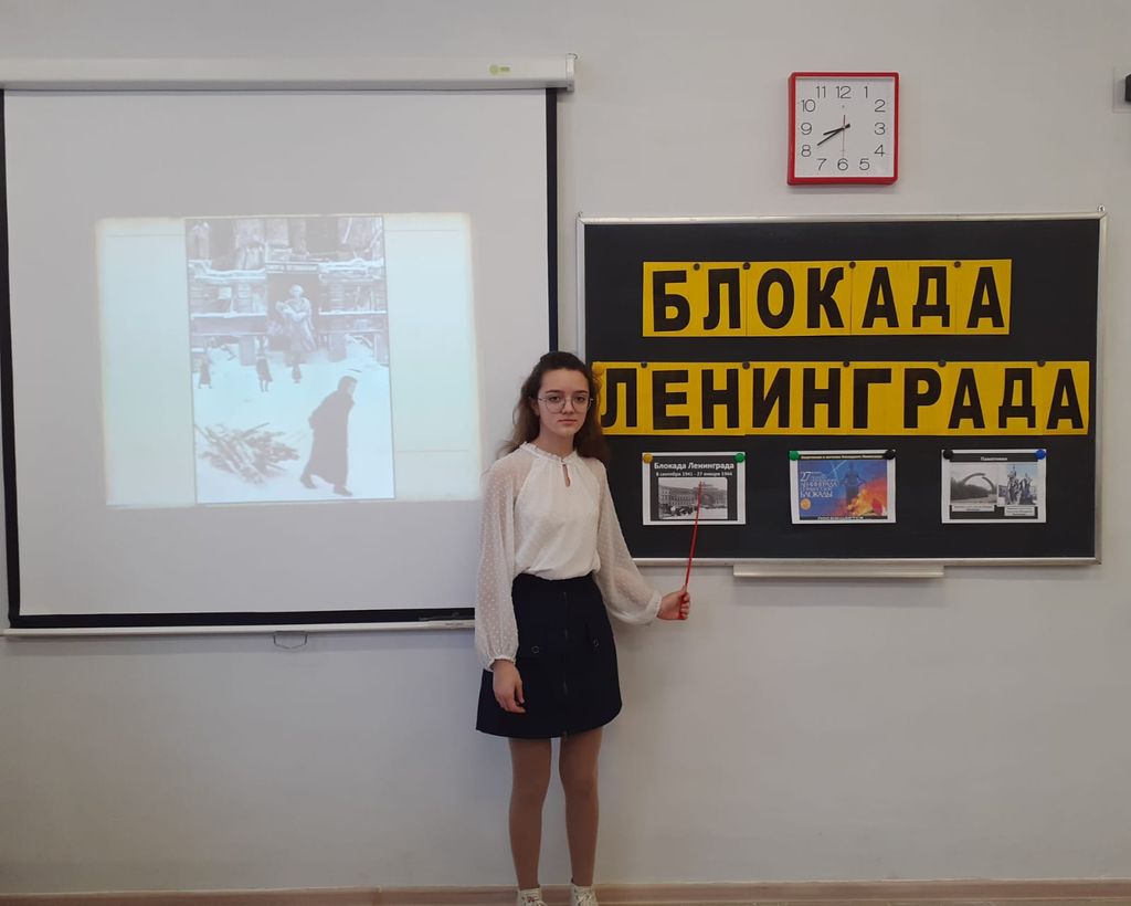 «Урок мужества». Учащиеся 7 «Б» класса (кл.рук. Яцун А. Г.) приняли участие во Всероссийской Акции памяти «Блокадный хлеб». Школьникам напомнили о беспрецедентном для XX века преступлении нацистов, направленном на уничтожение голодом мирных жителей Ленинграда; говорили о мужестве ленинградцев в годы блокады. Ключевым символом Всероссийской Акции памяти «Блокадный хлеб» является кусочек хлеба весом в 125 граммов — именно такая минимальная норма выдачи хлеба на человека в день была установлена в самый трудный период блокады Ленинграда.
