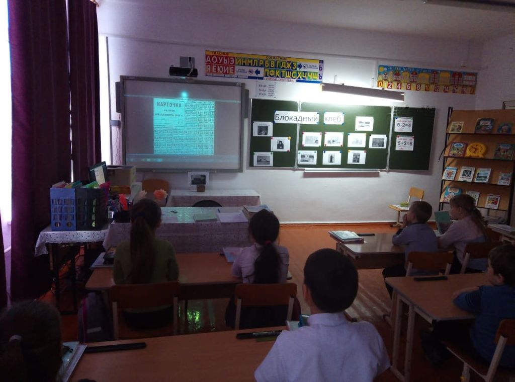 Для ребят проведён урок памяти «Блокадный хлеб». На уроке дети побеседовали о норме и составе хлеба, о «Дороге жизни» через Ладожское озеро, которая связывала блокадный город с «большой Землей», услышали реальные истории, связанные с «Дорогой жизни». Большое впечатление на школьников произвёл рассказ о норме хлеба блокадников.