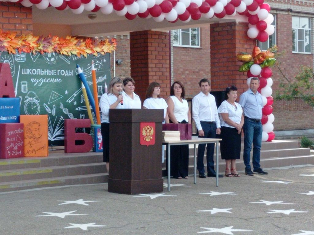 Двери нашей школы вновь распахнулись, чтобы дать старт новому учебному году! Все ребята отдохнувшие, загоревшие и загорелые, снова собрались на школьном дворе. Директор школы, гости - начальник отдела районного информационно – методического центра Каневского района Бондаренко Ольга Викторовна, глава Новодеревянковского сельского поселения Рокотянский Александр Сергеевич, настоятель Свято-Никольского Храма ст. Новодеревянковской отец Сергий, генеральный директор акционерного общества «Дружба» Миренков Сергей Николаевич, заместитель председателя профсоюзного комитета акционерного общества «Дружба» Гаман Наталья Юрьевна, Березовская Вера Николаевна, постоянный спонсор школы, адресовали слова поздравления учителям, педагогам, родителям, отметив, что учение – это нелёгкий, но радостный и увлекательный труд.